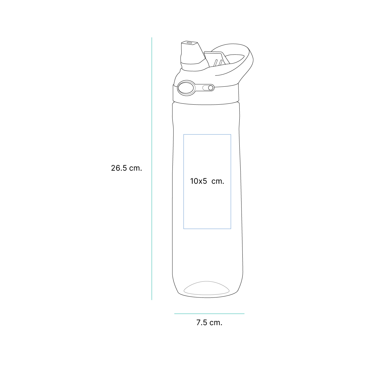 Cuenta con una boquilla de silicón suave, ideal para que los niños tomen agua cómodamente, y una agarradera de color que facilita transportarla en la mano o colgarla en la mochila. Está fabricada en tritán y ABS, materiales resistentes, ligeros y seguros para el uso diario.